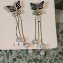 Saugaat Craft Butterfly Pearl Hanging Tassels Stylish Silver Earrings for Women and Girls Pearl Crystal, Metal, Silver Drops & Danglers