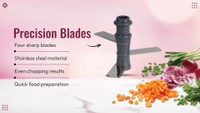 Sporting high-efficiency, durable blades, this chopper delivers reliable performance for a range of ingredients. The stainless steel blades are sharp and smooth, designed to make chopping vegetables, fruits, herbs, nuts, and even boneless meat easy. Moreover, its easy push motion operates without requiring excessive force, allowing preparation to feel seamless.