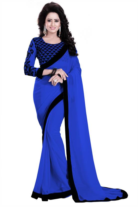 Saumya Designer Printed Bollywood Georgette Saree (Blue, Black)
