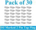 Sauran Pack of 30 Pieces Male 2 Pin Plastic Plug Top (ESP109) For Home, Office etc. Two Pin Plug (White)