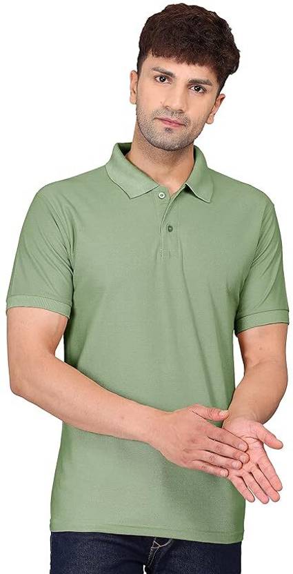 Men Solid Polo Neck Cotton Blend Light Green T-Shirt