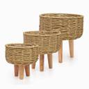 Savi Enterprisez Jute, Wooden Crafter Modern Floor Plant Stand Flower Stands for Living Room Display pot Storage Basket (Pack of 3)
