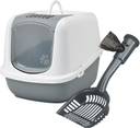 Spacious & Hygienic: Savic Nestor Jumbo Cat Toilet is ideal for large breeds or multiple cats, with a raised back to prevent leaks., Easy Cleaning: Features a folding front, swing door, handle, secure clips, and a carbon filter for odor control., Convenient Scooping: Trixie Clumping Cat Litter Scoop is designed for clumping litter and includes 20 plastic bags for easy waste disposal., Perfect Combo: Ensures a hassle-free, clean, and odor-free environment for your cat and home.