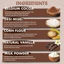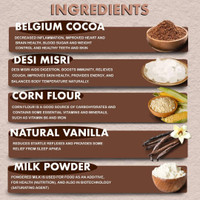 Courtesy of carefully chosen components, this cocoa powder combines Belgium cocoa, desi misri, corn flour, natural vanilla, and powdered milk. Belgium cocoa supports heart health, brain function, and skin nourishment, while desi misri is valued for aiding digestion and maintaining body balance. In addition, corn flour contributes carbohydrates along with vitamins and minerals, whereas natural vanilla helps encourage relaxation. Furthermore, powdered milk enriches both taste and nutrition, completing the blend.