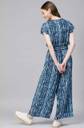 This is a chic blue tie-dye jumpsuit with the following features: Sleeveless cut with a surplice‑style V‑neck or scoop neckline—relaxed yet elegant. Wide-leg silhouette that flows nicely, lending a relaxed, lounge‑to‑street vibe. Drawstring or self‑tie waist for adjustable shaping and a flattering fit. Side pockets, adding both functionality and casual charm. Soft, stretchable knit or viscose blend (often rayon or polyester+spandex), delivering comfort, drape, and ease of movement Style & Fabric Insights Many versions are crafted from 100% viscose or rayon, occasionally mixed with spandex for stretch . The pattern resembles vertical tie-dye stripes, which help elongate the figure and add visual interest . How to Style This Jumpsuit Casual days: Pair with espadrilles, white sneakers (as shown), and minimal jewelry. Dress it up: Add a denim jacket or tailored blazer with strappy sandals for laid-back sophistication.tie dye jumpsuit