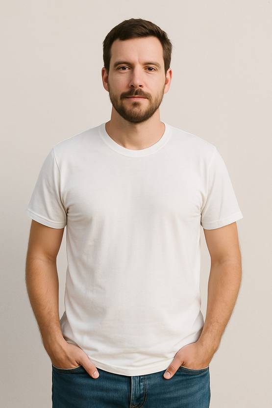 Keep it classic and comfortable with this versatile white plain cotton blend T-shirt. Crafted from a soft, breathable cotton blend fabric, this tee feels gentle on the skin and keeps you cool all day long. The timeless crew neck and regular fit make it easy to pair with jeans, shorts, or joggers for an effortlessly casual look.