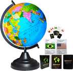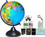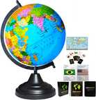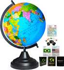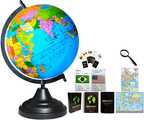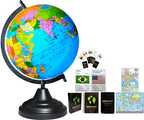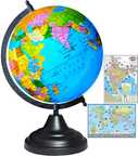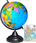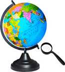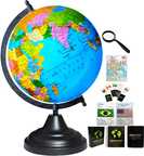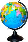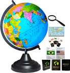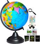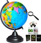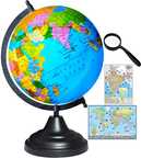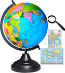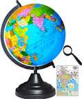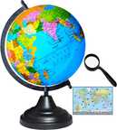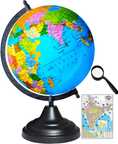 Savy Black Globe Hight 12"=30.4cm, Globe Diameter 8"=20.32cm & 75 mm MagnifyingGlass, Black Arc & Base, Multicolor Map, Blue Ocean for Kids School Home Office Table Rotating Laminated Political Geography Study World Globe (8 Inch Diameter Blue)