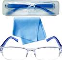*Compact Reading Glasses TRANSPARENT Half Rim, BLUE Sides, **Eye Protection and No Eye Strain, ***Reading Glasses designed with plastic temples can adjust the distance between the temples according to your face shape, ****Half Frame Reading Glasses for Men & Women Rectangle Semi Half rimless design and anti blue light, *****High-Grade Lens, scratch-resistant, Transparent Frame, more durable, not easy to damage. Compact design, convenient to carry Reading Glasses, not easy to loose, ******Anti Glare UV Filter Lenses - It can effectively block harmful ultraviolet radiation and reduce the damage caused by harmful blue light. The clear tinted lens can improve contrast, then optimizing vision acuity clarity with fewer distractions. Relieving your eye strains and headache when watch TV or look at smartphones.