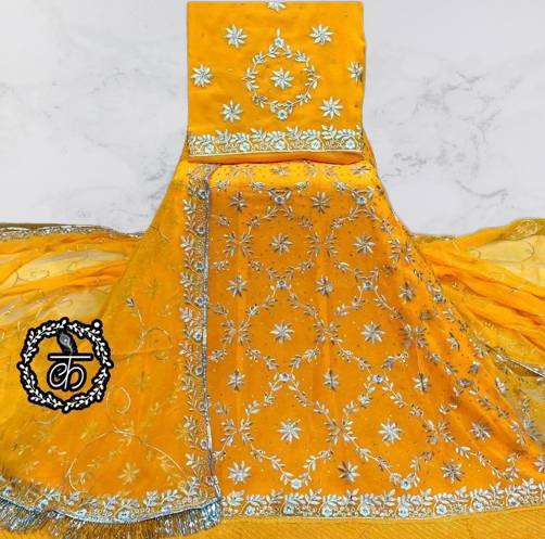Upgrade your ethnic wardrobe with this beautifully designed unstitched dress material set, perfect for any occasion. Crafted with premium-quality fabric, this set includes a top, bottom, and dupatta, offering you the freedom to customize it to your perfect fit and style.