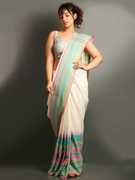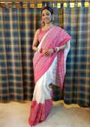 Printed Handloom Cotton Blend Saree (Multicolor)