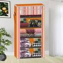 SB07 5 Layer Unique collapsible wardrobe PP Collapsible Wardrobe (Finish Color - Orange Strip Print, DIY(Do-It-Yourself))
