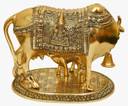 Invoke divine blessings into your home with the Divine Edge Kamdhenu Cow and Calf Idol. Symbolizing prosperity, purity, and protection, this sacred statue embodies the spiritual essence of Kamadhenu – the holy wish-fulfilling cow in Hindu mythology. Expertly handcrafted in metal with a rich golden finish, the idol features Kamdhenu standing gracefully with her calf, evoking maternal love and abundance. Whether placed in your home mandir, office, or gifted to a loved one, this piece adds a spiritual and aesthetic charm to any space. Weighing only 70 grams, this compact 15 cm idol is ideal for daily puja rituals, vastu alignment, and festive gifting.