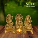 SBBCO Divine Edge – Lakshmi Ganesh Saraswati Gold Plated Table Diya Set (Height: 4.1 inch)