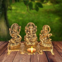 Invite blessings of wealth, wisdom, and knowledge into your home with this exquisite Lakshmi Ganesh Saraswati diya set. Featuring all three deities in one design, it is perfect for pooja rooms or as a spiritual centrepiece, creating an atmosphere of positivity and prosperity wherever it is placed.