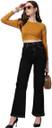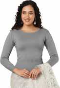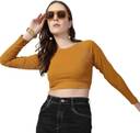 Make a striking statement with this vibrant woollen crop top, perfect for both casual outings and party occasions. The elegant design features a classic round neckline and long sleeves that culminate in beautiful bell-shaped cuffs, adding a touch of drama to your ensemble. The ribbed waistband creates a flattering silhouette while ensuring a comfortable fit. This versatile piece showcases fine knit craftsmanship with attention to detail in every stitch. The cropped length pairs wonderfully with high-waisted bottoms, from formal trousers to flowing skirts. The warm woollen fabric provides just the right amount of comfort and style, making it an excellent choice for cooler weather. The top's sophisticated design elements make it suitable for various occasions, from casual meetups to formal gatherings. Style it with matching accessories to create a coordinated look that's sure to turn heads. Available in a striking red shade that adds a bold pop of colour to your wardrobe