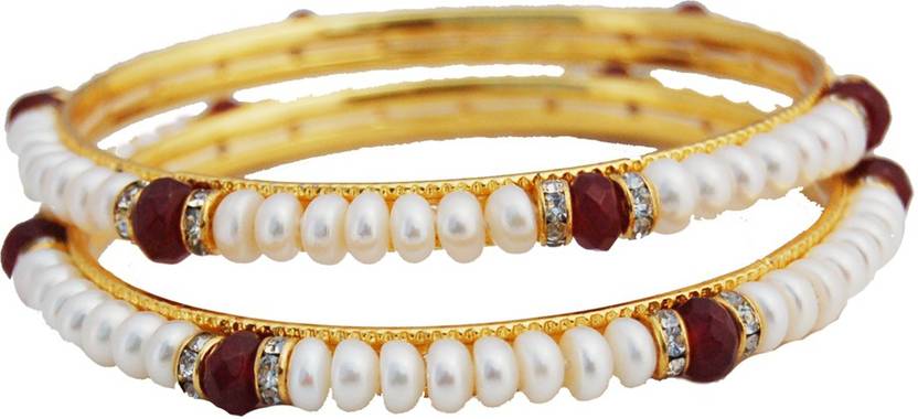 Metal Pearl Gold-plated Bangle Set (Pack of 2)