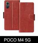 SBMS Flip Cover for POCO M4 5G (Brown, Shock Proof, Pack of: 1)