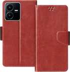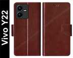 SBMS Flip Cover for Vivo Y22 Back Cover Case with Magnatic Closure (Brown, Shock Proof, Pack of: 1)