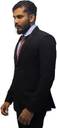 Black solid formal blazer and trouser, single breasted with double button closures, Regular fit and dry clean items, Product also without Shoulder Flap long sleeves, padded shoulders, three functional pockets at the front and two inside. The blazer has a lapel collar that is styled by folding over the front edges of the blazer. The natural effect of the colours gives an attractive look to the fabric. The fabric of this suit is supple and has a softness that is comfortable to wear. Styled like a true classic.