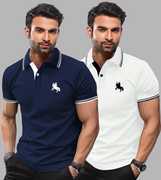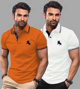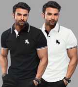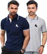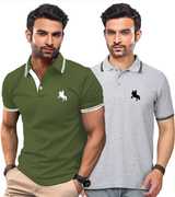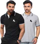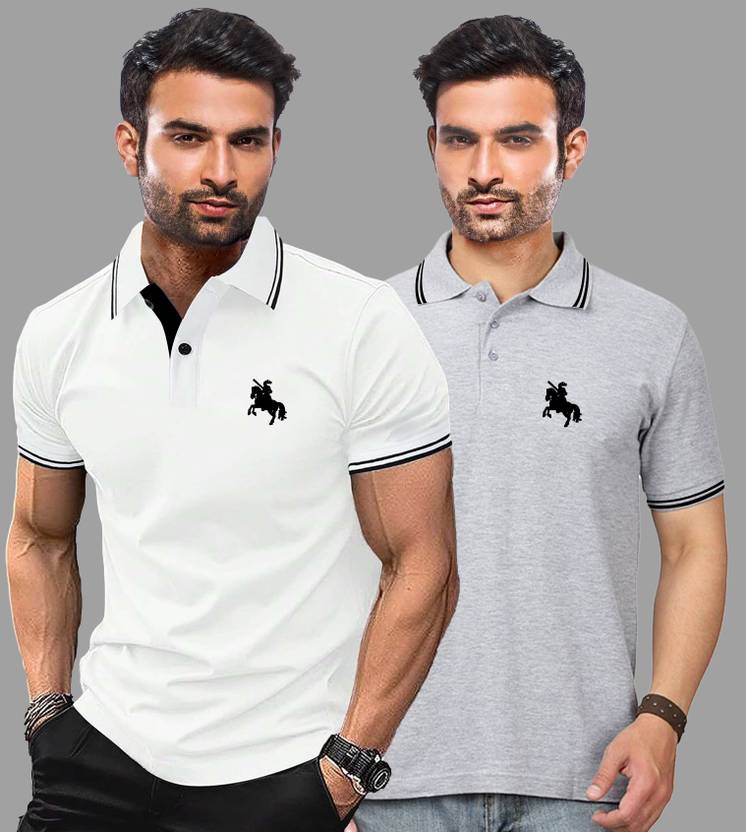 SCATCHITE Printed Men Polo Neck White, Grey T-Shirt