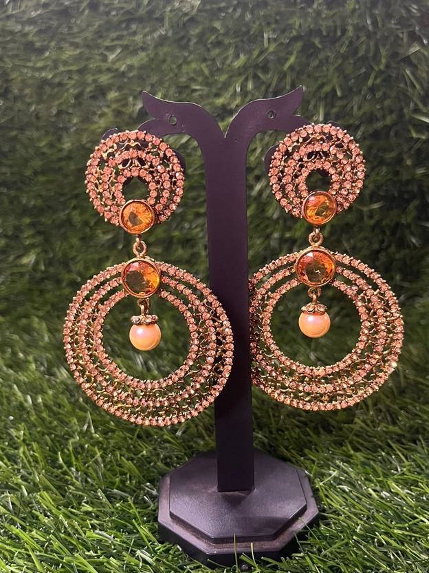 Double Stone Stud Round Earrings For Wedding and Party Alloy Drops & Danglers