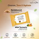 Crafted with natural, alcohol-free ingredients, these wipes are gentle on all skin types, including normal, oily, gentle, sensitive, and acne-prone skin. Turmeric is known for its antibacterial and antioxidant properties, calming and healing effect, reducing blemishes and acne scars, and stimulating. At the same time, Sandalwood acts as a cooling agent, keeping the skin moisturised by reducing dryness, leaving your skin calm, soft, and rejuvenated.