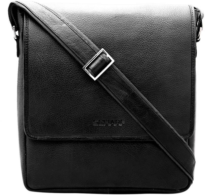 SCHARF Black Men Sling Bag - Medium Crossbody Vertical