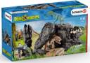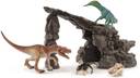 Dino Set with Cave Toy Figurine : The carnivorous Herrerasaurus roams hungrily around the dinosaur cave. The Microraptor is easily able to hide from it because it is small. But the Psittacosaurus only has one opportunity to escape: run away. But what´s that? A rockfall threatens to bury the animals. Will the three dinos escape?
