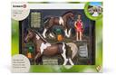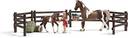 New Play set from Schleich! Set includes Trakehner Stallion, Trakehner Foal, Carrots, Girl Feeding, Hay Bales and Paddock Fencing. Perfect gift or starter set.