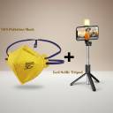 Sconzi Combo of Led Selfie Tripod and N95 Pollution Mask| with wireless remote Tripod, Monopod Kit, Tripod Kit (Dark Black, Supports Up to 1400 g)