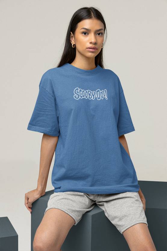 SCOOBY-DOO! by DreamBeĀ Women Printed, Typography Round Neck Cotton Blend Blue T-Shirt