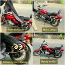 INVENTION - Bike Blazer Motorbike Covering Device is a SEMI -AUTOMATIC Full Body Motorbike covering device which fixes on theSaree Guard (any Design) & encloses a complete Motorbike body cover in it. Rider can now cover his Motorbike anytime, place & Weather without carrying anything with himSimply, Pull from the sealing rubber or Black Strap to access the Cover. Rotate the Handle on the Device to fold it back in. SUPER FAST Operation time: 8 to 10 seconds. > Perfect Daily Full Body Cover* as it Completely Covers your Motorbike's all parts: Speedometer, Headlight, Mirrors, Entire Seat, Tank & Engine area, Mirrors, Front Mud Guard.> 100% Mechanical (LONG LIFE), Working Temperatures -20°C to 70°C, can be used in RAIN, SNOW too> BEST fitting on OEM non-customized Scooters, Coverage may vary if customised> Made from Robust, Rugged Imported Nylon Taffeta Fabric with RUBBER Coating on the Fabric for Extra Water Protection. Soft to touch, Hard on RAIN. MACHINE WASHABLE too.. We're the Only ones using such a High End Fabric in this Industry> DO NOT use the Device until fixed on the Motorbike. > Device is Theft PROOF as we're providing LOCK NUTS to fix it. > Designed