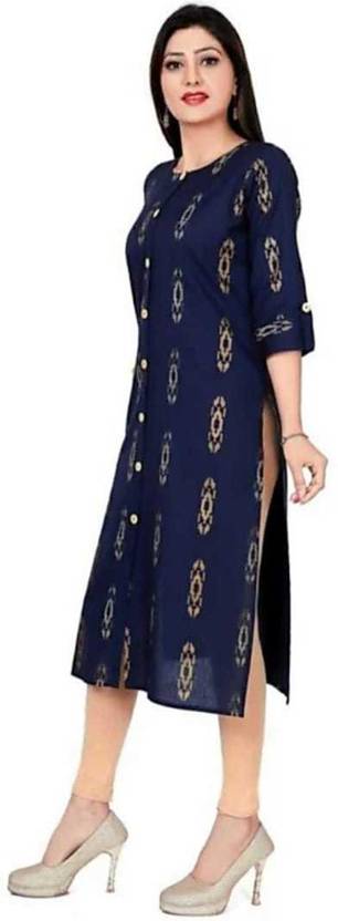 Women Printed Cotton Blend Straight Kurta (Blue)