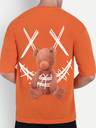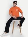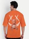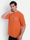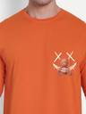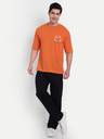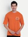 Men Printed Round Neck Cotton Blend Orange T-Shirt