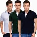 SCOTT INTERNATIONAL Pack of 3 Men Solid Polo Neck Cotton Blend Dark Blue, Green, White T-Shirt