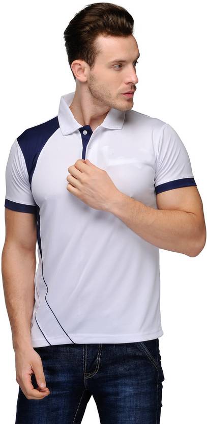 Men Solid Polo Neck Polycotton Dark Blue, White T-Shirt