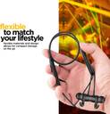 It lets you choose from 3 different sizes of eargels for a secure and comfortable fit. Also, its magnetic design helps you move around comfortably with the headset wrapped around your neck.