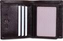 This stylish brown wallet features a textured finish and a practical design. It includes a transparent ID window, a secure coin pocket with flap, multiple card slots, and a spacious currency compartment. Crafted for everyday utility, this wallet combines functionality with a sleek, classic look—perfect for modern men.