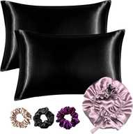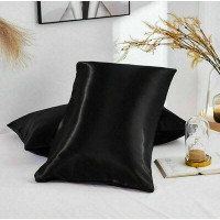 SCRUNBOW Satin Pillows Cover (43.2 cm*68.6 cm, Pack of 2, Black)