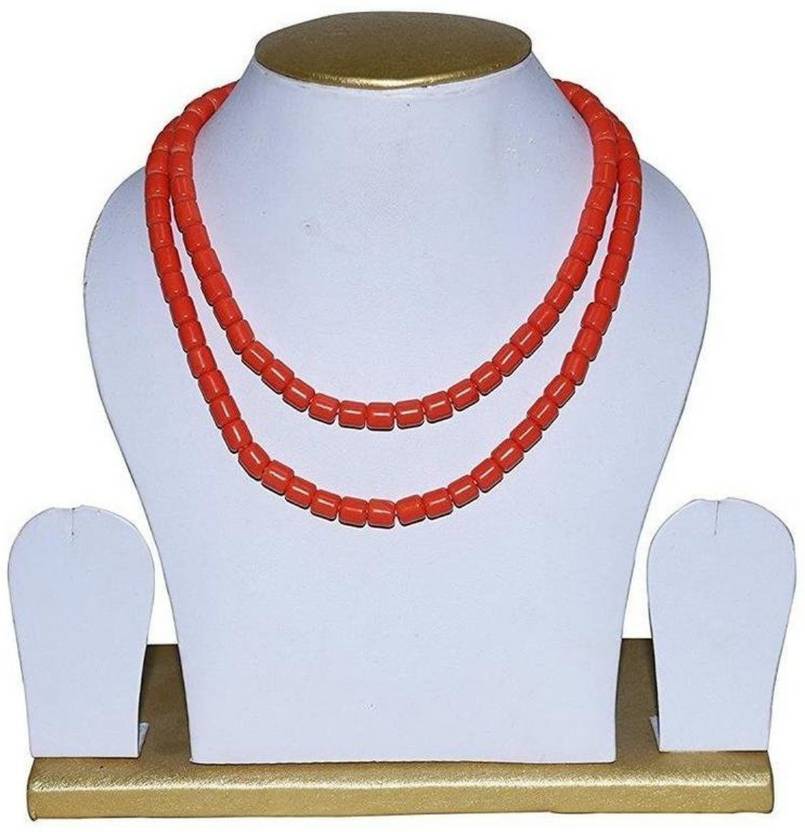 SCSPali Round Semi Precious Stone Coral Munga Mala (39 cm x 0.08 cm x 0.08 cm Plastic Chain