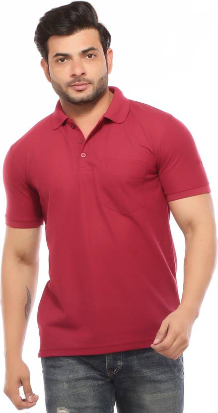 Men Solid Polo Neck Cotton Blend Maroon T-Shirt