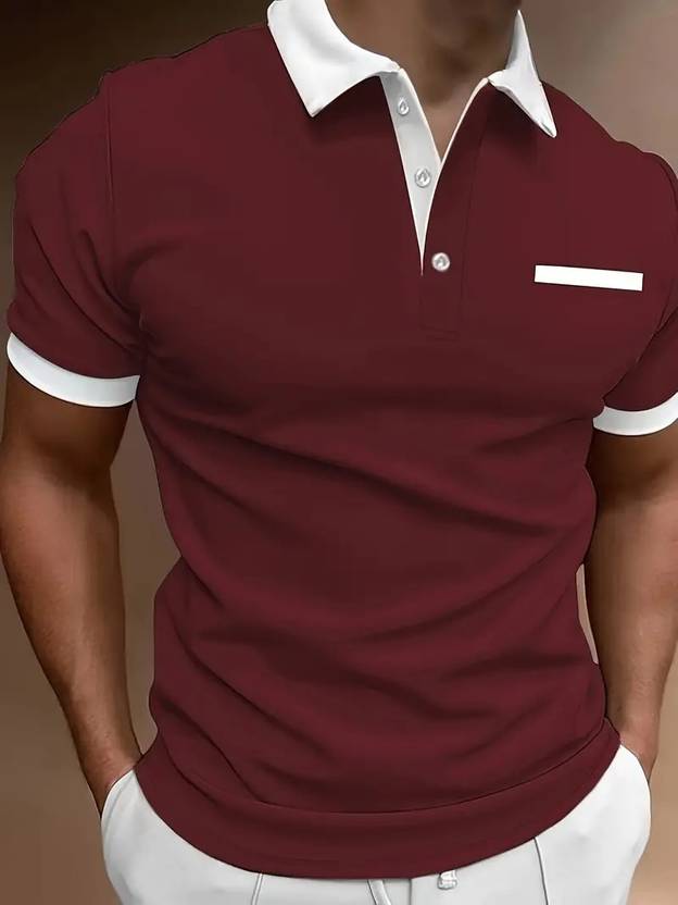 SCUBA Solid Men Polo Neck Maroon T-Shirt