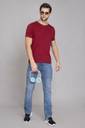 Men Solid Round Neck Cotton Blend Maroon T-Shirt