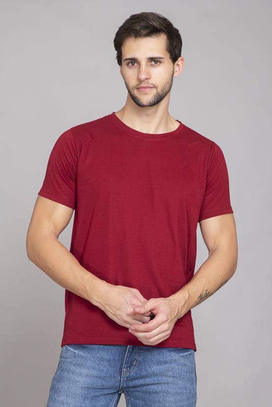SCUBA Solid Men Round Neck Maroon T-Shirt