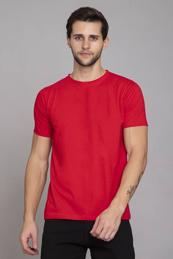Men Solid Round Neck Cotton Blend Red T-Shirt