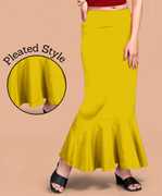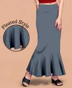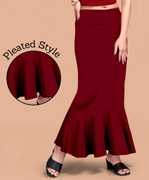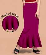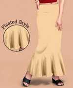 SCUBE DESIGNS Soft Comfy Pleated Silhoutte Saree Shapewear. The Microfiber Shapewear is designed with a targeted compression to smoothen out and flatter your abdomen, thighs and back, making you look slimmer. Featuring a seamless waistband that is strong enough to hold the saree tucks. A Flare on the hemline for an easy movement. Unlike other available shape wears, the Pleats stitched flares are thoughtfully designed and do not curve outwards giving any undesirable perky shapes at the bottom. Can be worn instead of a petticoat or under the petticoat. • The four way stretch which Exhibits greater Mould shrinkage that means you get Instantly look slim and fit & get that feminine silhouette. • Nylon 66 Yarn is Lightweight and Breathable fabric that means you get Superior grip with rope less strain on body parts. • The Fabric has High stiffness with High mechanical strength & Excellent wear resistance that means you get Long Lasting Durability. • The Best Quality Fabric with Optimum comfort which Improves posture and Abdominal muscles Weight Loss Efforts that means you get Reduced prolapse of age. • Material: Lycra • Material Composition: 92% Microfiber and 8% Elastane