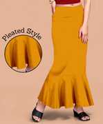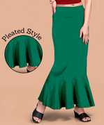 SCUBE DESIGNS Soft Comfy Pleated Silhoutte Saree Shapewear. The Microfiber Shapewear is designed with a targeted compression to smoothen out and flatter your abdomen, thighs and back, making you look slimmer. Featuring a seamless waistband that is strong enough to hold the saree tucks. A Flare on the hemline for an easy movement. Unlike other available shape wears, the Pleats stitched flares are thoughtfully designed and do not curve outwards giving any undesirable perky shapes at the bottom. Can be worn instead of a petticoat or under the petticoat. • The four way stretch which Exhibits greater Mould shrinkage that means you get Instantly look slim and fit & get that feminine silhouette. • Nylon 66 Yarn is Lightweight and Breathable fabric that means you get Superior grip with rope less strain on body parts. • The Fabric has High stiffness with High mechanical strength & Excellent wear resistance that means you get Long Lasting Durability. • The Best Quality Fabric with Optimum comfort which Improves posture and Abdominal muscles Weight Loss Efforts that means you get Reduced prolapse of age. • Material: Lycra • Material Composition: 92% Microfiber and 8% Elastane