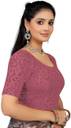 The blouse fabric is very good. The design looks very beautiful. It is fancy blouse. The fitting is also good. The colour looks nice and does not fade. The stitching is also done nicely.