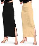 SCUBE DESIGNS Saree Shapewear Black & Beige (L) Lycra Blend Petticoat (L)