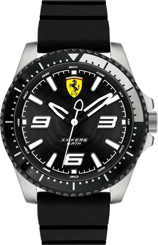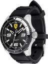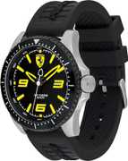 The men's watch for fans who want to affirm their passion every second of the day, thanks to the sporty lines and bold Racing Black dial with numbers inspired by the single-seater nose. This watch has a soft silicone strap that guarantees comfort and bold style. The 44 mm stainless steel case is imposing and covers the accurate quartz movement. The classic coloured Ferrari Shield dominates the dial and adds its unmistakable signature to the design. Waterproof up to 5 ATM.